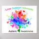 Hermoso y único árbol de rompecabezas de autismo con mariposas, cintas y corazones en un espectro de colores, y "Advocate de Apoyo al Amor" para apoyar la conciencia del autismo.