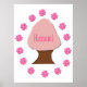 Este poster presenta una imagen gráfica de un cerezo cubierto de flores rosas y rodeado por un círculo de flores de flores de bonito conocidas como Sakura. Este diseño ha sido creado para celebrar el festival Hanami japonés y contiene la palabra Hanami en el árbol de cerezos. La celebración marca la primavera cuando la gente se reúne para hacer picnic bajo los florecientes cerezos.