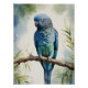 Esta delicada pintura acuática cuenta con un encantador paracaídas azul encaramado en una rama de árbol de eucalipto, rodeado de suaves hojas verdes. Las suaves pinceladas y la relajante paleta de colores crean un ambiente tranquilo e inspirado en la naturaleza, perfecto para los amantes de las aves y del arte botánico.
