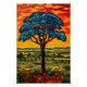 Bajo un cielo abrasador, un árbol con hojas azul turquesa se yergue majestuosamente contra un paisaje dorado. Una obra de arte vibrante y surrealista que irradia fuerza, magia y naturaleza indómita, perfecta para transformar cualquier espacio con energía y color atrevido.