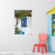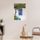 De una pintura original en acrílico, de Yvonne Ayoub, de un limonero y una puerta azul de una típica casa insular en Skiathos, Grecia