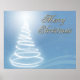 Ilustracion de un árbol de Navidad abstracto sobre un fondo azul claro que tiene ráfagas de nieve en él. Bonito diseño moderno para Navidades.