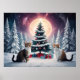 Póster Árbol de Navidad cubierto de nieve con gatos