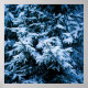 Nevada en el bosque. Copos de nieve en el aire. Nieve cubierta de árbol de Navidad. Colores azul y verde, ánimo invernal. ¡Feliz Navidad y Feliz Año Nuevo para ti y para ti!