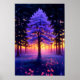 En medio de un bosque exuberante, se alza un majestuoso árbol morado, con un matiz único que contrasta con la vegetación vibrante. A medida que el día se acerca a su fin, una encantadora puesta de sol naranja asoma entre los árboles, y respira cálidamente el paisaje. Esta obra de arte digital captura la escena encantadora del árbol morado en medio del bosque, con el encanto de la puesta del sol añadiendo un toque etéreo al pintoresco entorno.