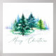 Árboles simples de acuarela con Feliz Navidad