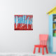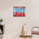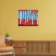 Pintura acrílica original de árboles bircos en otoño con hojas rojas vibrantes impresas en papel.