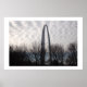 Vista única del Arco Gateway en St. Louis. El Arco se erige como una pieza magnífica contra la textura de las nubes en el cielo y sobre la silueta de la línea de rodadura.