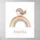 Añada un toque adorable a la habitación de su bebé con esta imagen de la pared de aves de Boho Woodland. Con un bonito pájaro de acuarela encaramado en un arcoiris pastel, este diseño de ensueño es perfecto para una guardería, sala de juegos o como regalo para un recién nacido. Personaliza con un nombre para un toque especial y personalizado!