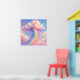 Obra de arte de una nube con un arcoíris que sale de ella en un estilo de pintura pastel. Este diseño reinventa el icono clásico del arcoíris en algo verdaderamente especial. Esta ilustración caprichosa presenta una nube esponjosa y suave como malvavisco en tonos soñadores de rosa y lila. Un arcoíris vibrante cae en cascada como una cascada, espolvoreando polvo y destellos en el cielo. La paleta suave y pastel de azules bebé, violetas y amarillos cálidos crea una atmósfera tranquila pero alegre, lo que la convierte en la adición perfecta para una guardería, sala de juegos o dormitorio infantil.
