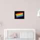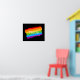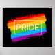 Esta obra de arte muestra un arcoiris colorido con la palabra Orgullo.