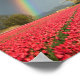 Impresión poster de un arcoíris colorido en un cielo oscuro sobre un molino de viento y un campo lleno de tulipanes rojos brillantes durante una tormenta de primavera en un paisaje cerca de Amsterdam en los Países Bajos.
