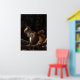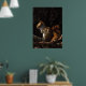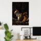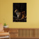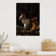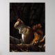 Este poster presenta un momento fuera de tiempo. Una hermosa ardilla roja está sentada en una rama en un parche de luz solar frente a la corteza de textura oscura de un árbol de cerezo silvestre.