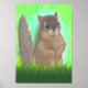 Una obra de arte digital que representa a una ardilla de pie sobre sus espaldas con una expresión facial chocante