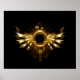 Areas mecánicas brillantes, con engranajes y banner redondo de latón. Steampunk
