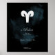 Original print of Aries astrological sign with accompanying date and symbolic meanings in reverse
