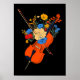 Un ilustracion impresionante de un violín entrelazado con flores florecientes sobre un fondo negro. Esta obra simboliza la armonía entre la música y la naturaleza, creando una composición vibrante y cautivadora.