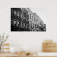 Afiche vintage de edificios de arquitectura de Bruselas en blanco y negro.