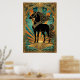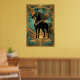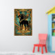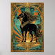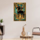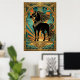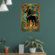 Póster Art Deco Black Horse Statue Sunburst Teal Gold