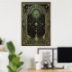 Gaze into the infinite with the "Aura Celestial" Star Map poster. This masterfully detailed artwork features a brilliant central starburst connected to a complex web of hand-drawn constellations and planetary orbits. The celestial map is encased within a grand, symmetrical Art Deco frame, featuring towering spires, arched portals, and gem-like accents in signature teal and metallic gold.