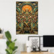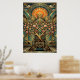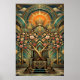 Póster Art Deco Cherry Blossom Tree Throne Gold Teal
