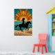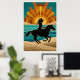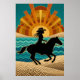 Póster Art Deco Cowgirl Horse Sunset Teal Orange Poster