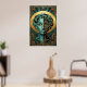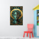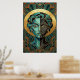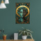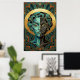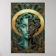 Póster Art Deco Cubist Woman Face Gold Teal Poster