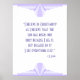 Un clásico patrón de arte deco en lila y púrpura, este poster también incluye una cita de C.S. Lewis: "Creo en el cristianismo pues creo que el sol ha aumentado: no sólo porque lo veo, sino porque por eso veo todo lo demás".