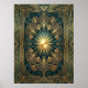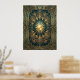 Póster Art Deco Ginkgo Leaf Sunburst Poster | Gold Teal