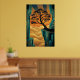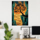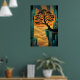 Póster Art Deco Ginkgo Tree Ocean Cliff Gold Teal Poster