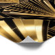 Metallic Luminosity: Rich gold tones shimmer with realistic metallic finish—from bright champagne highlights to deep burnished brass shadows. The gradients create a sense of actual light reflection, giving the flat print sculptural dimension.