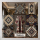 Art Deco design elements, characterized by luxury and traditional geometric patterns displayed. Xhubleta is a handmade garment worn by highland women and girls in Northern Albania, can be like a photo gallery in interior aesthetics advertised with photos. 8k, photorealistic, architectural photography, interior design magazine style, unrealistic rendering with engine 5
