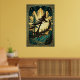 Póster Art Deco Pine Tree Silhouette Gold Teal Cliff Post