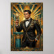 Command attention with this breathtaking Art Deco portrait of a queen seated upon a grand throne. Featuring intricate gold embroidery on a velvet gown and a massive radiating sunburst crown, this piece embodies the ultimate luxury of the Roaring Twenties. Set against a backdrop of marble pillars and deep teal geometric arches, this artwork is designed to bring regal opulence to any master bedroom, luxurious lounge, or sophisticated office.