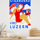 C. 1929 poster Art Deco promocionando la playa frente al lago de Strandbad Lido en Luzern / Lucerna Suiza.