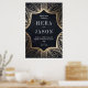 Una hermosa suite boda dramática, con un intrincado patrón de oro falso original de estilo Nuevo, en una impresionante base de carbón a medianoche. Tu texto se escoge en un blanco llamativo, para crear un contraste que deletrea lujo y drama. Perfecto para una pareja que quiere impactar.