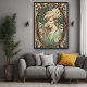 Esta fascinante imagen de arte poster inspirada en el arte Art Nouveau presenta a una mujer serena envuelta en intrincados motivos florales y elegantes baños, característicos del estilo Art Nouveau de principios del siglo XX. El retrato presenta a una mujer elegante vestida de vintage con líneas fluidas, colores suaves y acentos florales decorativos, con suaves tonos verde azulados y sepia. Esta obra de arte generada por IA rinde homenaje a la belleza del diseño Art Nouveau, combinando las formas orgánicas con la creatividad moderna. Perfecto para aquellos que aprecian la estética vintage con un toque contemporáneo, este arte mural es una impresionante incorporación a cualquier espacio vital, dormitorio o colección de arte. Los detalles y el encanto atemporal de la pieza hacen que sea ideal para los amantes del arte, los amantes de la decoración vintage y los amantes de la elegancia del Art Nouveau. Su versatilidad lo convierte en un regalo para bodas, aniversarios, cumpleaños o simplemente para elevar la decoración de una habitación con un toque de encanto clásico.