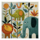 Lleva alegría y calidez a la habitación de tu hijo con este encantador arte de pared de animales de la jungla para nursery.