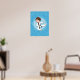Este diseño presenta un lindo niño de artes marciales de cabello marrón con cinturón negro. De fondo azul.