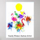 Candy Waters tiene 20 años, tiene autismo y no es verbal, pero es capaz de hablar a través de su arte y ser escuchado en todo el mundo. Candy es una artista publicada con su libro de arte titulado "Regalo no hablado ~ Artista de autismo de las aguas dulces" disponible en Amazon. La revista Irvine Magazine, de la Universidad de California, está usando la pintura "Mr. Sun" de Candy para la portada de su edición de verano de 2013 que arroja luz sobre los esfuerzos de la UCI para ayudar a los afectados por el autismo. Las pinturas de Candy en Sun han sido destacadas en CBS Sunday Morning News Show numerosas veces. También se han hecho innumerables segmentos de televisión e historias noticiosas en Candy's Art. Candy pinta cada pintura en su página de Facebook con un poco de ayuda de sus amigos (Just Like The Beatles Said) Utilizamos muchas técnicas de pintura diferentes con Candy (arte original, colaborativo...etc) Nuestra familia es honrada y orgullosa de ser sus humildes ayudantes. ¡¡Vamos Candy!! Fe, amor y esperanza!!