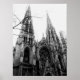 Foto en blanco y negro del frente de la Catedral de San Patricio en la ciudad de Nueva York