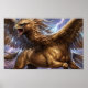 From the layered hush of thunderclouds, the Hippogriff rose—wings stretched wide, hooves drawn in close, suspended between earth and sky. Lightning traced quiet lines across its form, revealing feathers shaped by wind and strength shaped by resolve. Rain fell without apology, yet the creature did not falter. It moved forward with intention, as if the storm itself were part of its calling.