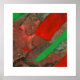 Tomada de una serie de pinturas abstractas con tinta acrílica. Los rojos y verdes primarios parecen flotar hacia arriba frente a un fondo texturado.