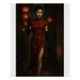 Un poster cinematográfico de estilo retro con una mortífera y bella asesina china en un profundo qipao rojo (cheongsam) con una cortina alta, sutilmente bordeada con códigos ocultos o motivos de dragón. 🎁 Buscando un regalo único? Esta misteriosa belleza encantará a cualquier amante del arte.