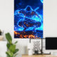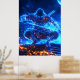 Un misterioso guerrero de neón se agacha en la oscuridad, envuelto en una energía azul brillante, listo para golpear con su katana. Sus ojos penetrantes luminiscentes brillan bajo su capilla mientras chispas de fuego eléctrico bailan a su alrededor. Esta ninja de alta tecnología, ambientada contra un horizonte cibernético futurista, encarna la combinación perfecta de sigilo, velocidad y potencia cruda, convirtiéndolo en una pieza esencial para los aficionados a la ciencia ficción, el ciberpunk y la estética del neón.