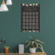 El poster de nuestro vintage boho floral boda cuenta con una decoración floral de rosas románticos, flores de peonía y anémona, vegetación y toques rústicos de plumas bohemias en ricos tonos de rosa polvoriento, rosa malva, cassis, blanco cremoso, verde musgo, gris y oro en un color de fondo gris oscuro/negro. Un esquema de colores dramático y onírico para tu boda de otoño o invierno. Personalice el hermoso monograma de personalizado, el invitado boda y el texto del número de la mesa para su elegante día de boda rústico.