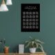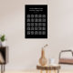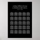 El diseño del cartel de asientos de boda formal en blanco y negro presenta una tipografía hermosa que combina un guión de caligrafía florecida tradicional con letras mayúsculas clásicas. El texto personalizado se puede personalizar completamente con un monograma de los nombres de la novia y el novio, la fecha de la boda, los nombres de los invitados y sus asignaciones de mesa. Por favor, visite nuestra Colección de Bodas Clásicas Elegantes en Blanco y Negro para diseños coordinados.