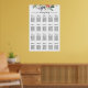 Distribución de hasta 20 tablas, distribuidas por número de tabla, no por nombres, con hasta 12 personas por tabla. Texto simple en negro sobre el cuadro de asientos en blanco (fondo es personalizable); haga clic en "personalizar" para mover columnas, cambiar fuentes, colores, color de fondo o tamaño del poster. También está disponible el texto en blanco en versiones coloreadas. Haga clic y arrastre sobre las tablas (comenzando desde fuera de la página) para mover más de una tabla a la vez. Flores de color rojo y blanco con un toque de bayas de enebro morado en la parte superior.