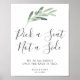 El cartel de boda "Elige un asiento no a un lado" incluye una aceituna verde.