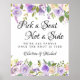 Rosas muy bonitos violetas y marfil crean un diseño rústico floral de campo. Elige un asiento, no un lado está escrito en un tipo de letra negrita y moderna. Todos somos de la familia una vez que el nudo está atado, escrito en un clásico tipo de letra serif. Los nombres de la pareja de bodas están escritos en una letra de guión. Se puede editar todo el texto. También puede cambiar el tipo de letra, el tamaño y el color del texto y el color de fondo.